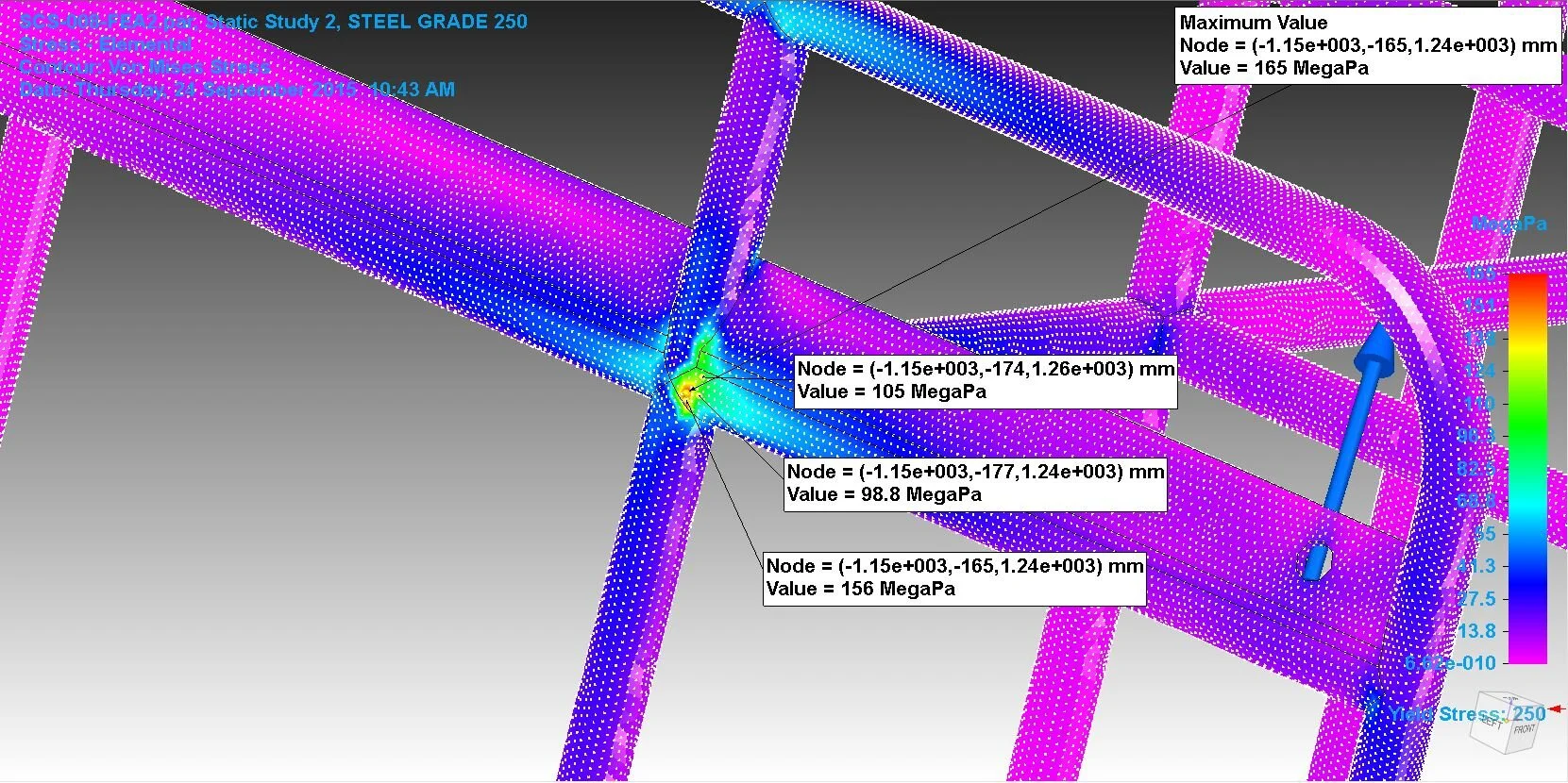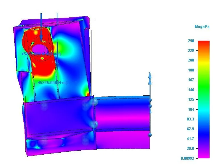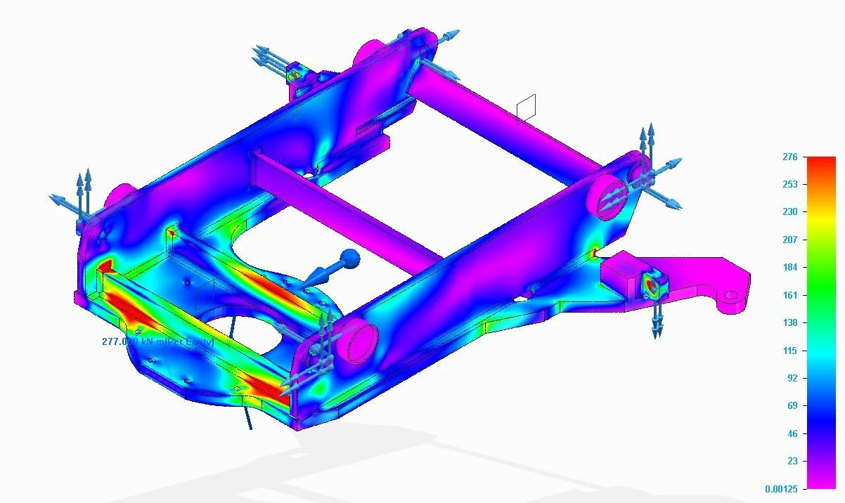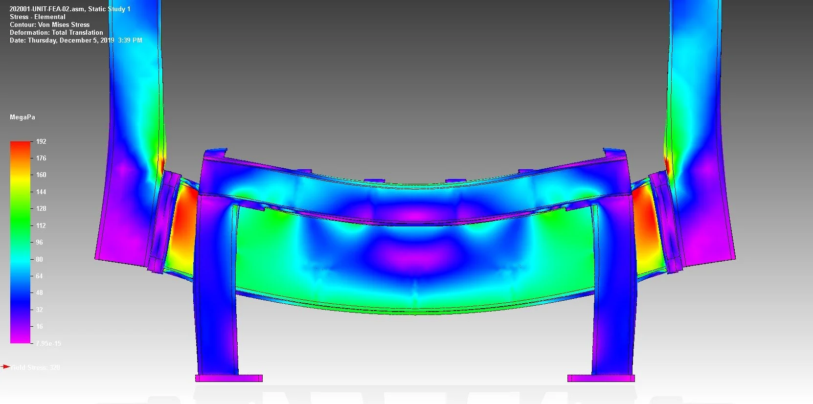 FEA is also used to verify the structural performance of welded frames, support brackets, equipment skids, and other components subject to mechanical loading.